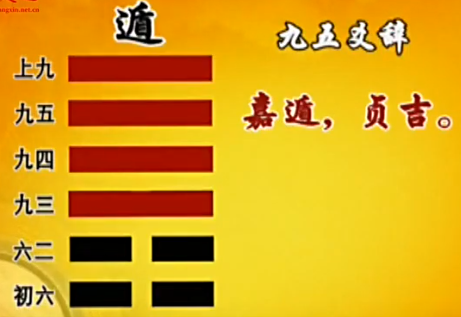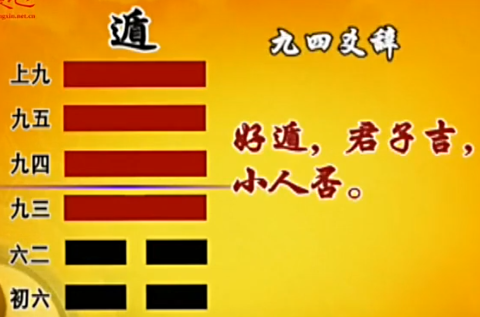 一个人到了职位高的时候,你就要开始安排退路,你就会好遁、嘉遁、肥遁。 你恋栈,恋栈到最后,你就会感觉到,不是下边逼你,就是外面给你很大的压力,要不然就是自己筋疲力竭, 它主要是在讲这个。下面的人要慢慢地来,不管你懂不懂事,你总要走上正道,上面的人要知道,我要有退的准备, 然后我们整个的遁道,就会全身而退,这是非常不容易的事情。