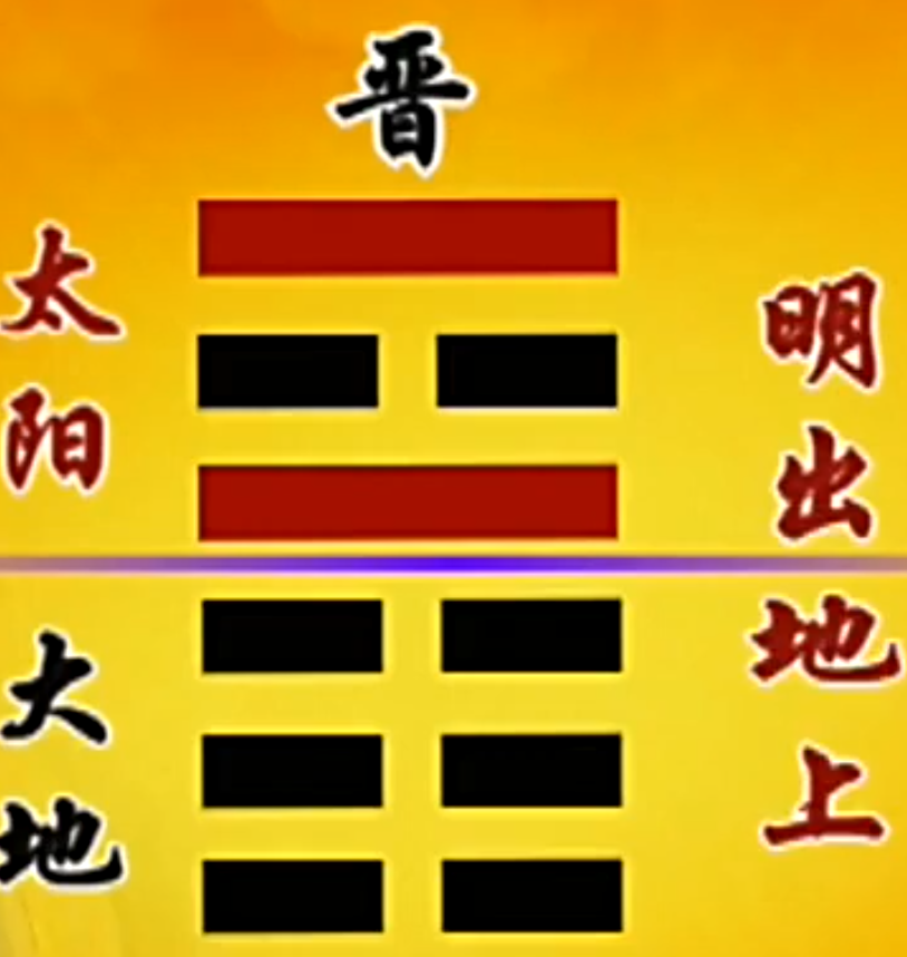 明出地上,是指什么?指上面是离卦,离卦就是太阳,就是光明, 就表示这个太阳,没有被乌云所遮掩,使得大家心情很好,使大家方便出外去工作。 明出地上,地,就是坤卦, 坤卦一定要顺应这个太阳它所给你的时间,你好好地把正事做好。