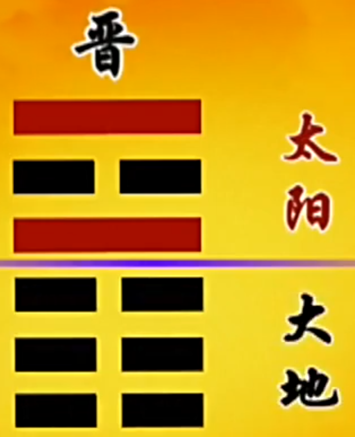 你看这个卦象,上下两个卦,上面那个卦是太阳,下面那个卦是大地。