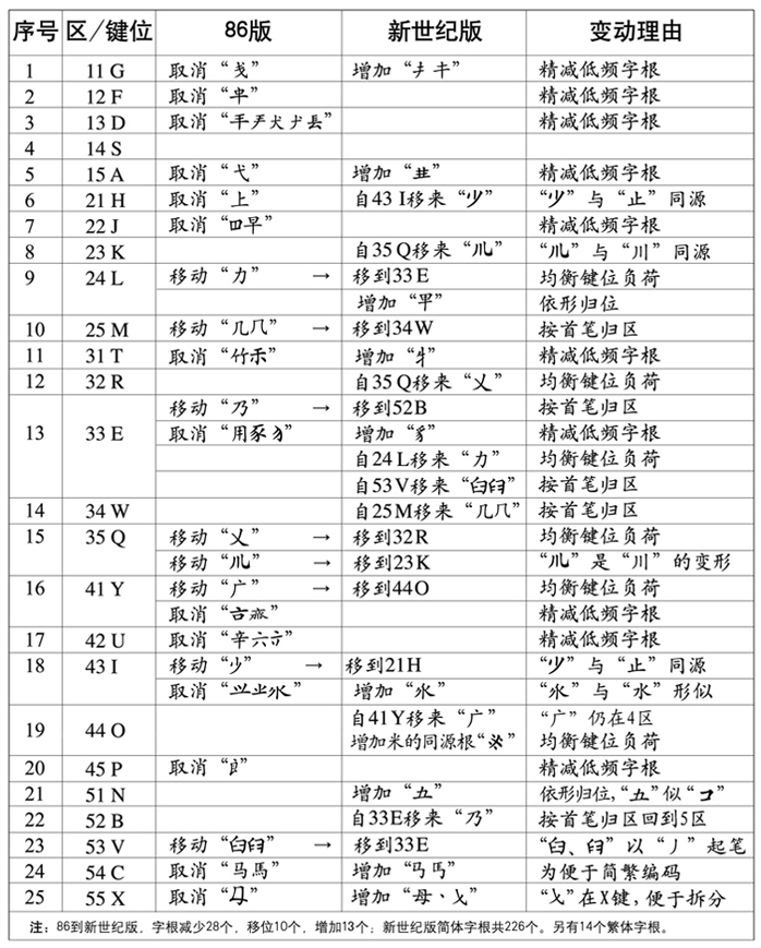 ✠ Full tables of Wubi86 sequences
