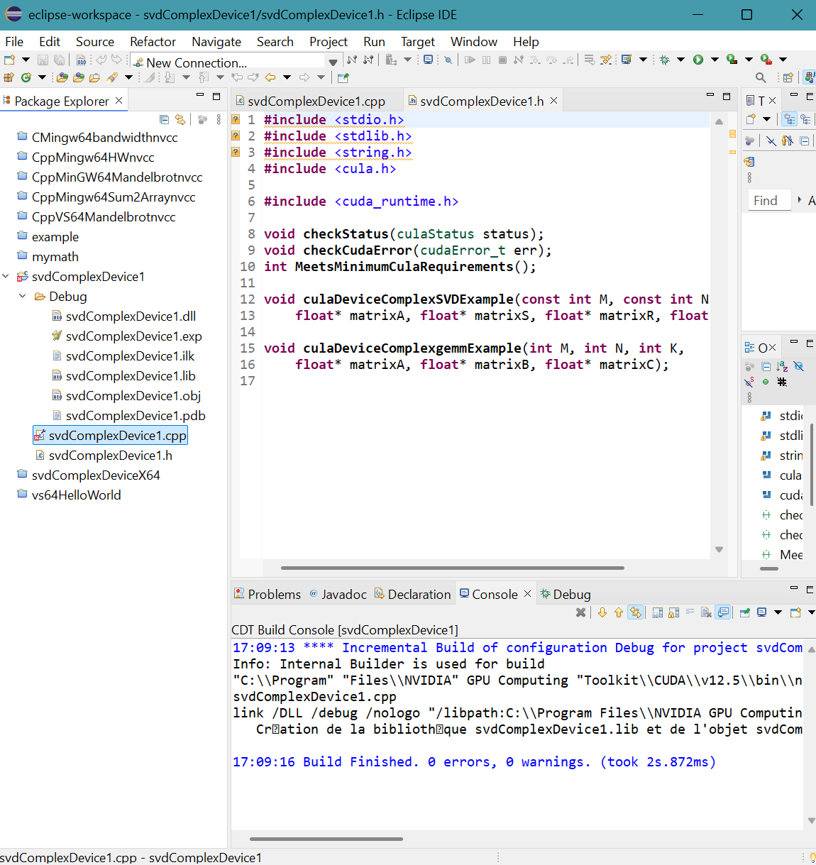 - The C++ 64-bit shared library svdComplexDevice1.dll project with nvcc in Microsoft Visual C++ toolchain