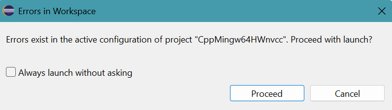 - Right click CppMingw64HWnvcc project in Package Explorer then select Refresh.