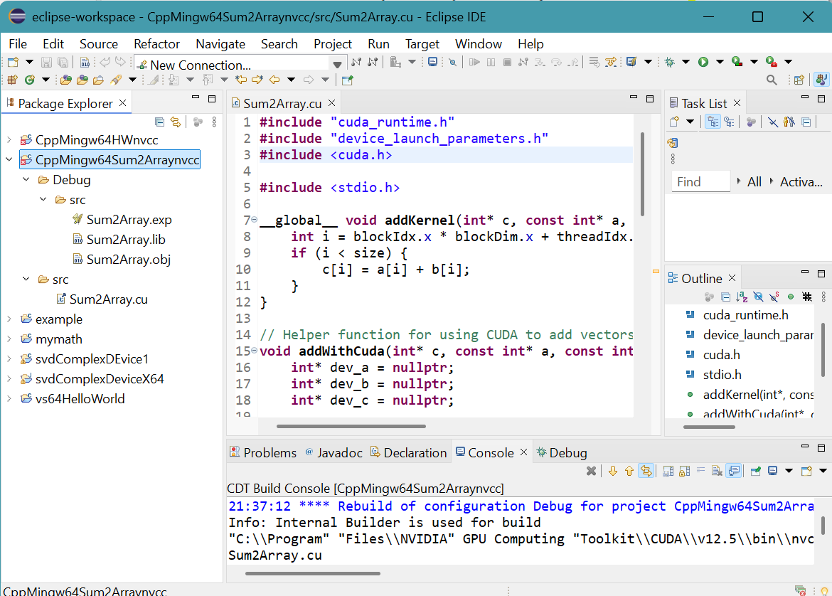 - The CUDA C++ 64-bit Sum2Array project with nvcc in MinGW GCC toolchain