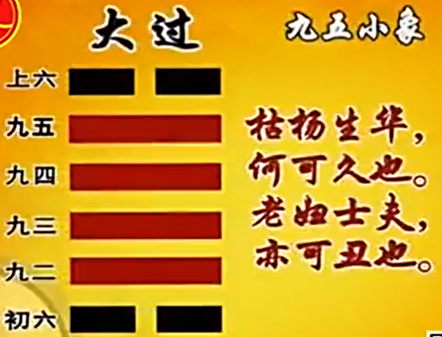 大家把大过卦整个看过去,你会发现最上面是阴爻,最下面也是阴爻,