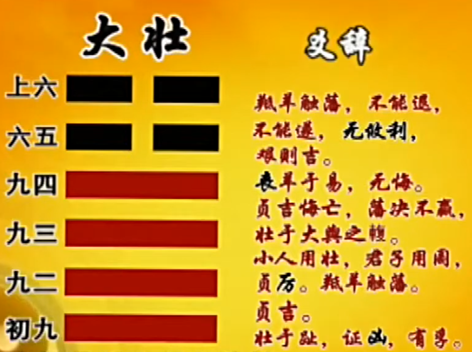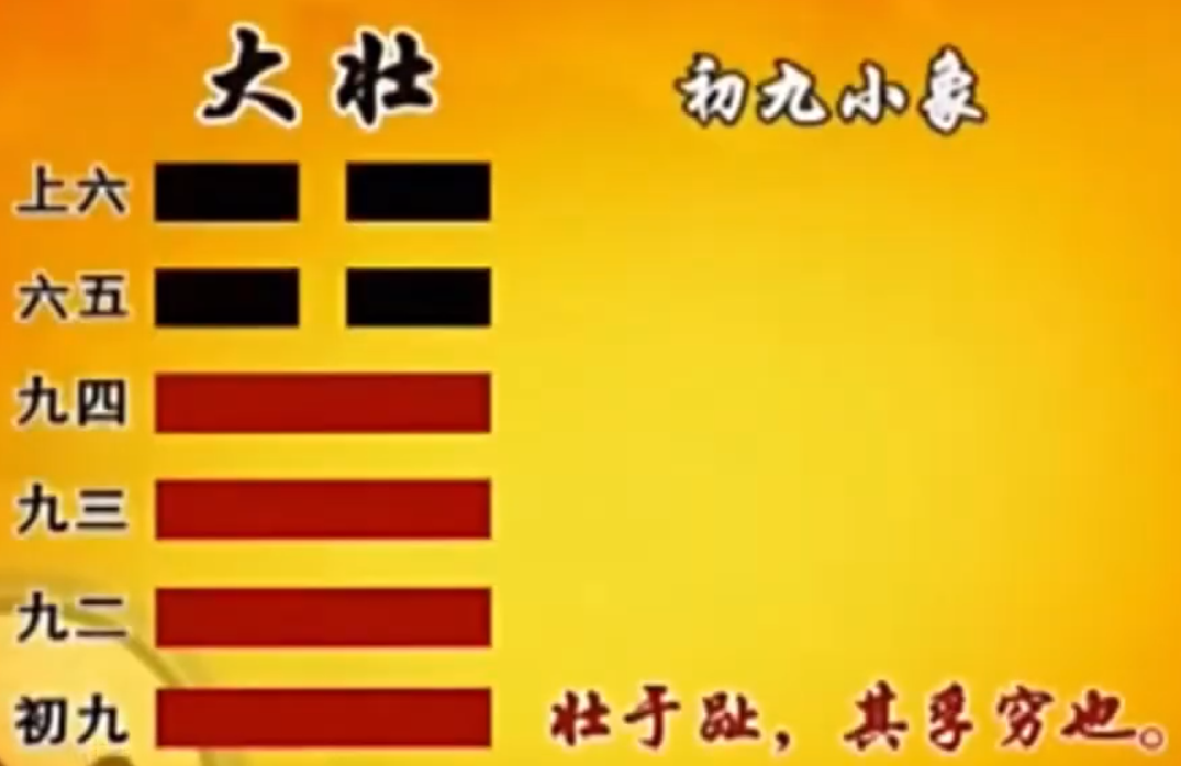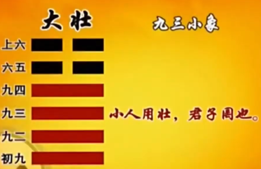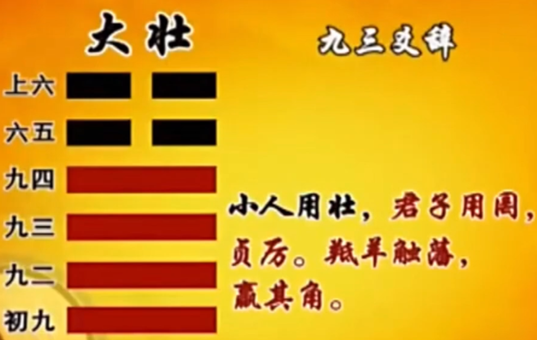 那我们按照《易经》的惯例,就是说你只要合适,你就会得到好处,你只要走正道,你就会继续发展。 那这样跟大壮看起来,不是一点关系都没有吗?在大壮,在声势浩大的时候,它没有什么适合不适合的, 一定是合适的,不合适怎么会大壮?