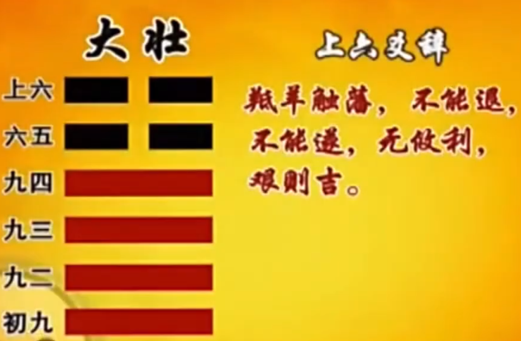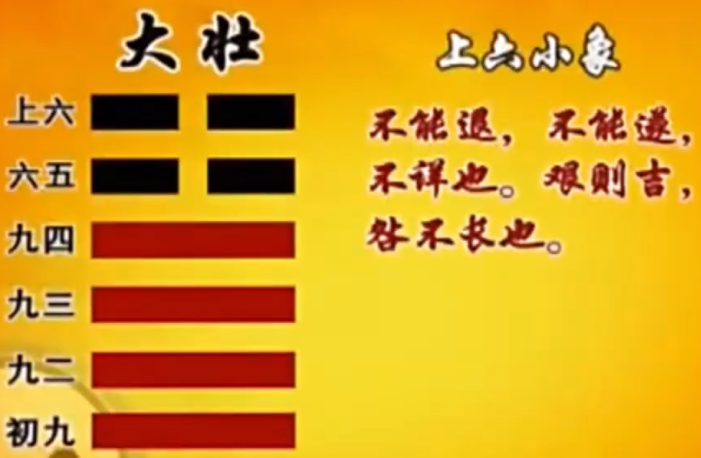 "艰则吉",咎不长也。 你如果能够下定决心,认为说我在艰辛的环境当中, 我还是可以自保自全,我一方面不要好高骛远,一方面也不要说我在这里受尽委屈, 相反的,我终于来到了大壮的终极,这是何等的光荣! 你只要心态一改变,那个咎很快就消失了,就不会老是缠在你这里。 如果你一天到晚都不想守正道,都不安于现状,你就算乱撞乱撞,也撞不久。