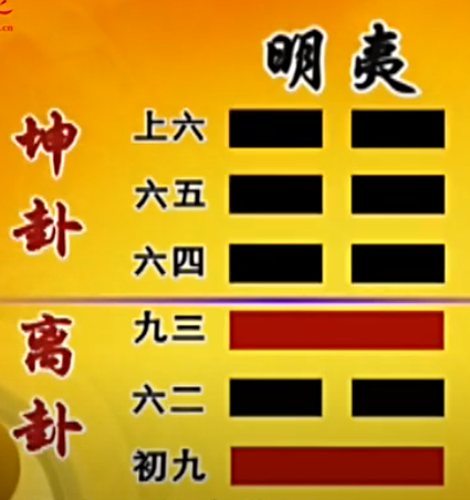 明夷卦是[失意的意思 frustrated meaning]。主卦是离卦,卦象是火;客卦是坤卦,卦象是地。