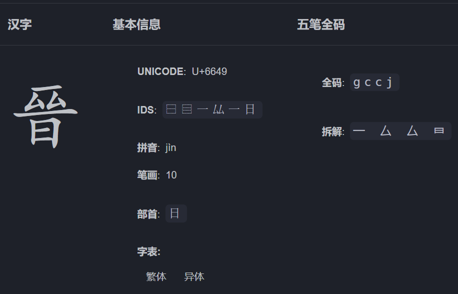 五筆編碼字典及拆分圖查詢