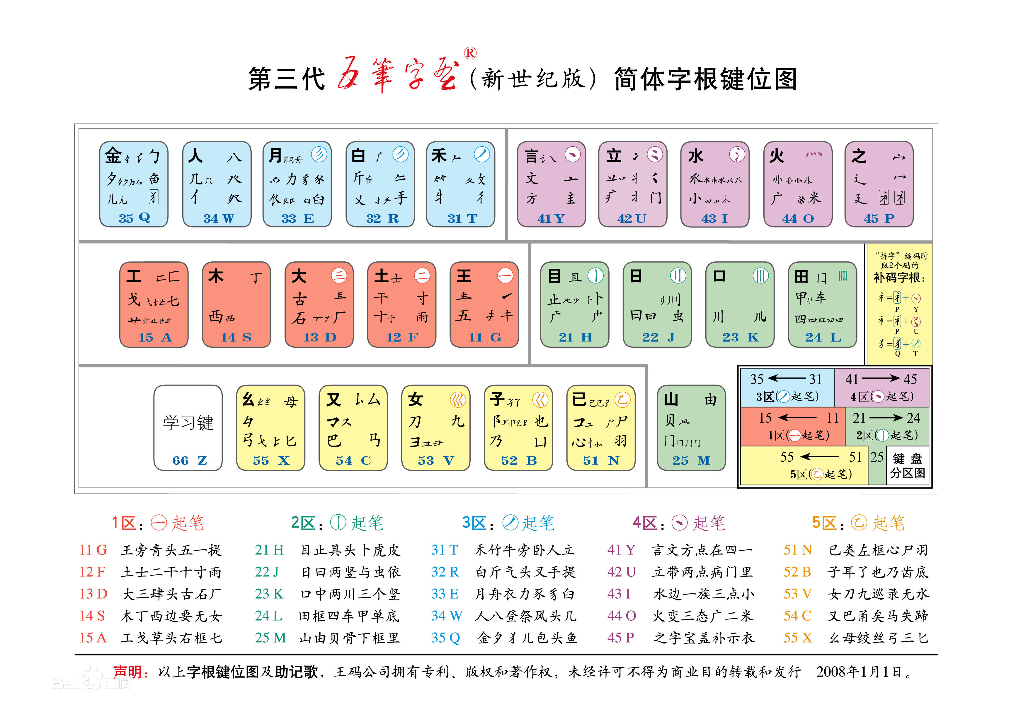 ✠ 千千秀字: 86版五笔字型键盘字根总图+五笔字型字根助记口诀